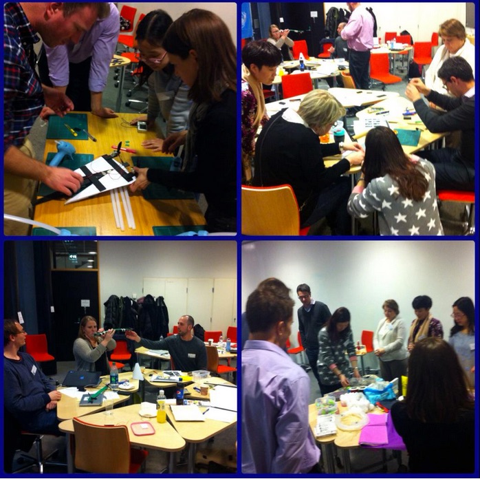 After the opening sessions, conference participants formed global teams, with the task of starting to “model the GEC”. The idea behind the task was that each global team would get to know each other, have an opportunity to discuss the day´s topics and would start to model GEC by using Innovation Education materials and tools. The global teams were so focused in building their GEC models that they almost forgot lunch!