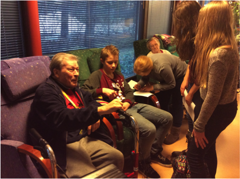 On our second visit to Old people’s home pupils gave profiles they wrote to their senior person. They continued the interview by making more questions about plays seniors played on their childhood. First of all it was good to see how happy seniors were when they had an opportunity to meet 5A’s pupils again. Pupils heard lots of stories, but they also realized that it is hard to remember things which have happened so long ago.